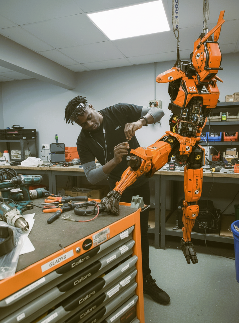 Advanced orange robotic arm assembly and real-time visualization in lab environment
